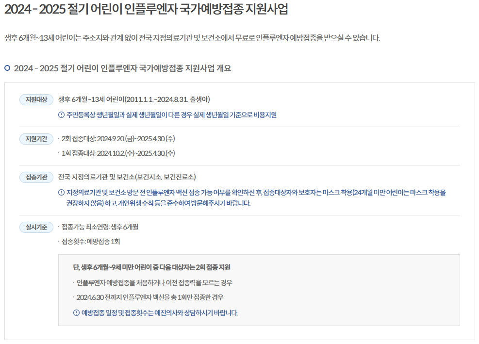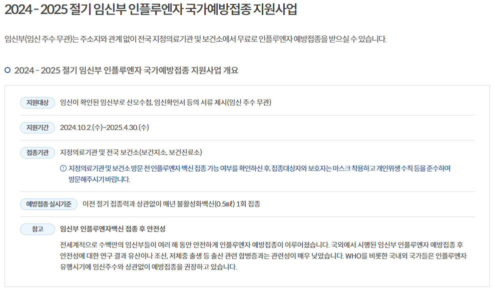 - 유행 시기(11월 4월)를 고려하면 **10월 11월 사이**에 맞는 것이 가장 좋아요.